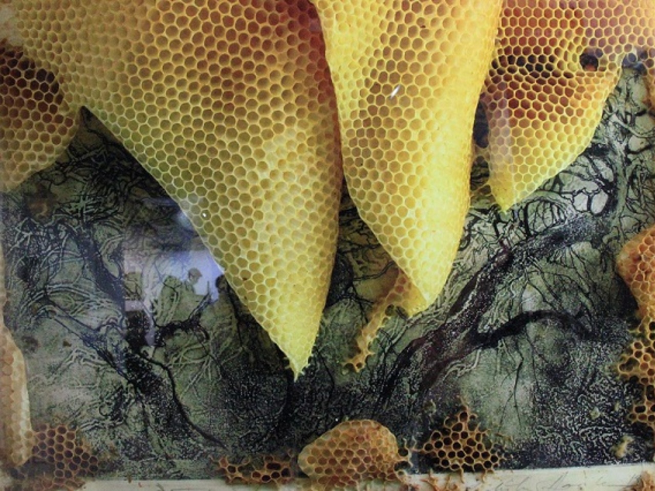 А вот и еще один пчеловод-креативщик — американец чешского происхождения Ladislav Hanka. Вот уже более 20 лет он отдает свои графические работы на доработку пчелам. В результате такой коллаборации получается нечто необычное — пчелиные соты встраиваются в пейзажи, служат фоном либо обрамлением портретов и натюрмортов.