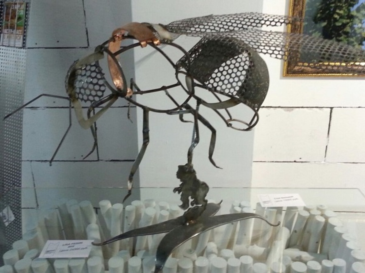 А вот металлическая пчела под авторством талантливого дизайнера Лизы Федон. Арт-объект выполнен из металла и проволоки, как и ряд других изящных скульптур на природную тематику.