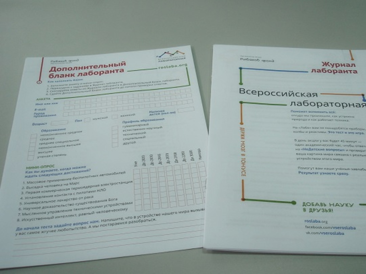 Отвечать на поставленные вопросы предлагалось в специальном журнале лаборанта.