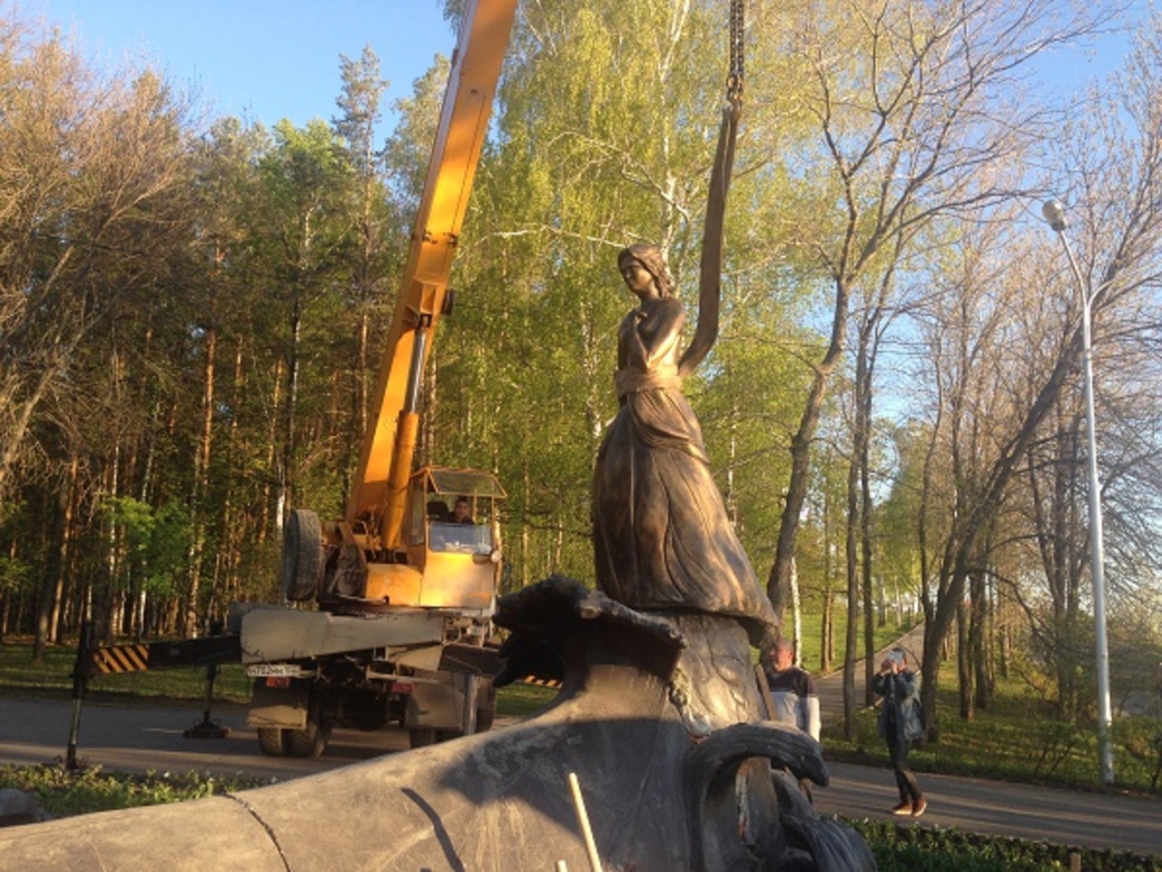 Естественно, установка памятника вызвала повышенный интерес у посетителей парка. Вокруг собрались зеваки, которые снимали весь процесс на мобильные телефоны и обсуждали между собой, что символизирует девушка, стоящая на скале.