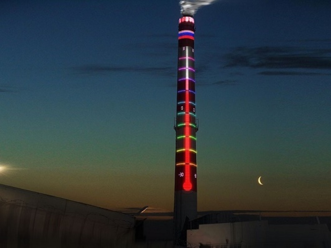 Арт-объект виден с трех сторон и показывает реальную температуру воздуха в городе. Работу по архитектурной подсветке трубы котельной выполнили работники МУП «Уфимские инженерные сети». Таких проектов в городе еще не было, при этом финансирование проекта ведется за счет собственной прибыли котельной.