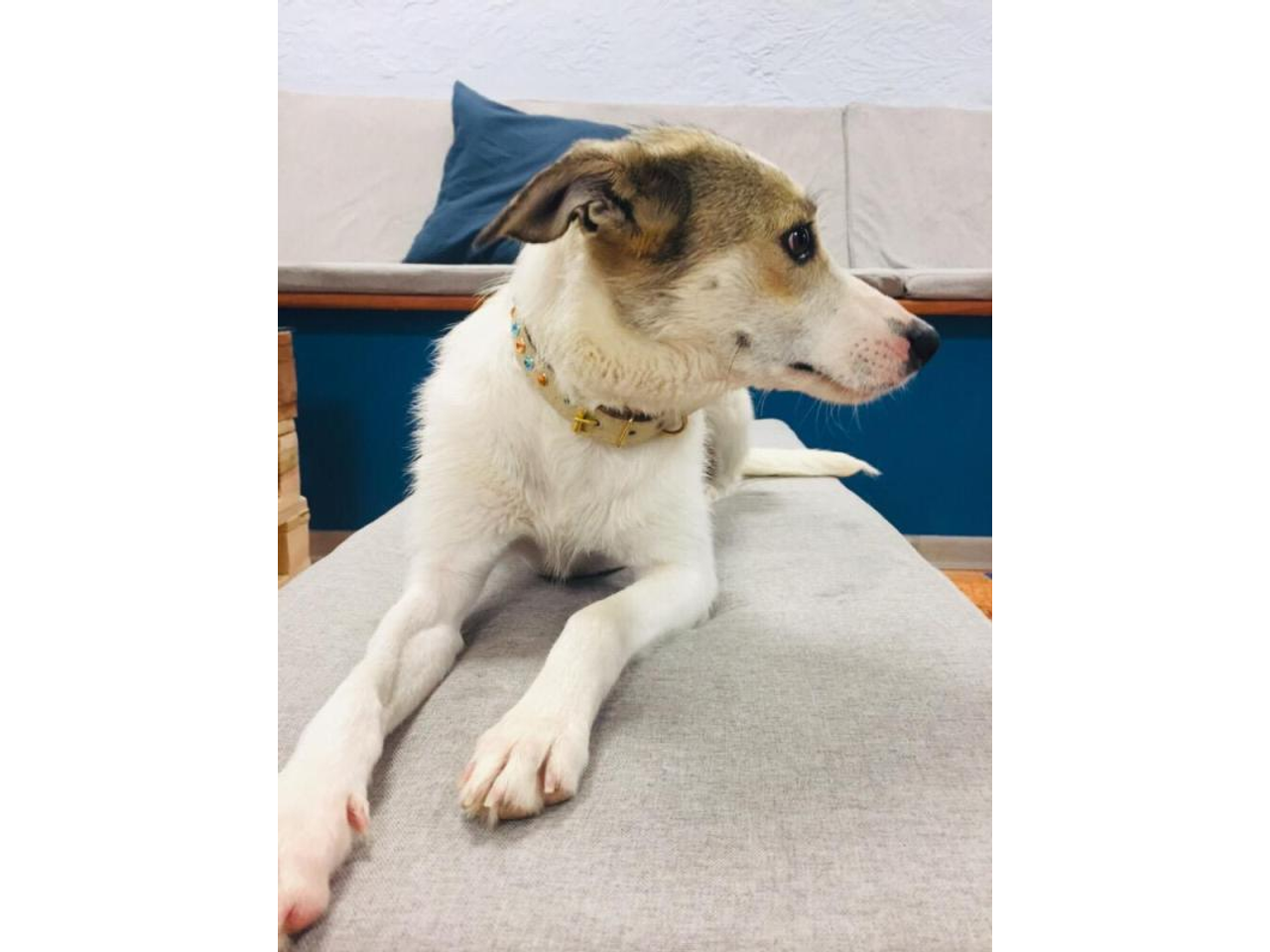 Потом мы забрали Дейлу. До приюта она жила на улице, родила щенят. Щенят пристроили, Дейлу стерилизовали и отдали нам. Это тоже очень маленькая собака, ей где-то год-полтора. Она тоже ищет хозяев.