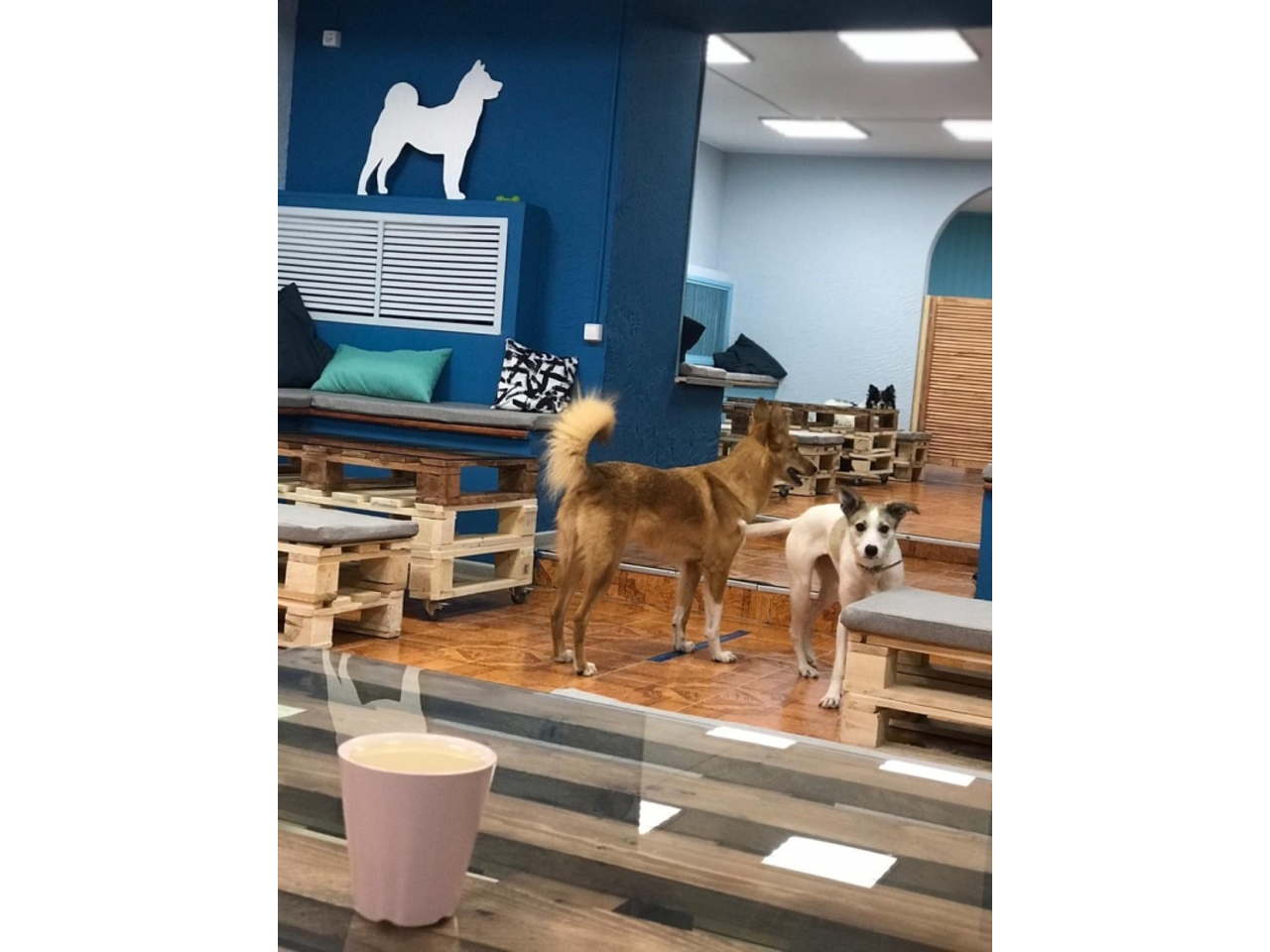 Всего собак в песокафе будет пять, вместе с моей собакой Тессой. Сейчас из приюта взяли пока двух — Дейлу и Веснушку.