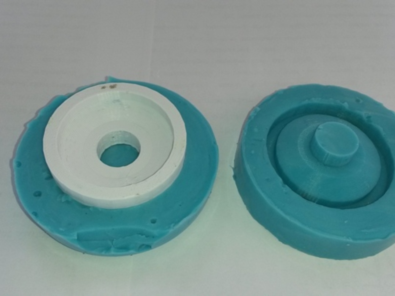 — Обычно виброизоляторы делают из резины, силикона и полиуретана. Я использовал полиуретан. Для создания макета-формы на 3Д-принтере сделал опытную деталь-болванку из пластмассы. Затем облил её силиконом. Вытащив болванку, получил полость под размер детали. В полученную силиконовую формочку заливается жидкий полиуретан, он застывает и получается нужной формы виброизолятор.