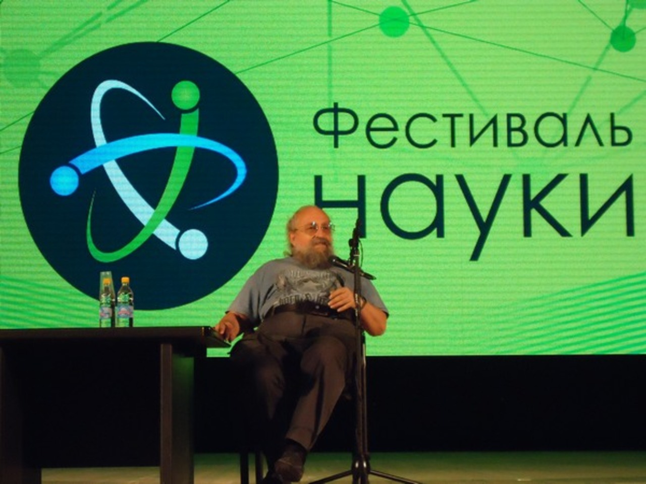 Второй центральной научной площадкой стал городской концертный зал «Башкортостан», расположенный рядом Академией наук. Наверное, в силу лучшего технического оснащения и наличия большей площади, в этом месте проводились мероприятия масштабнее, да и по количеству их было больше, нежели на первой площадке. В Большом зале зрители собрались, пожалуй, на самую ожидаемую встречу дня с известным в России супер-эрудитом Анатолием Вассерманом. Несмотря на то, что мероприятие «Сто вопросов взрослому» ориентировалось на школьников, взрослых в зале оказалось не меньше. Вассерман вел «стандартную» лекцию о целостной картине мира, подчеркивая, что все наблюдаемое есть результат взаимодействия закономерностей.