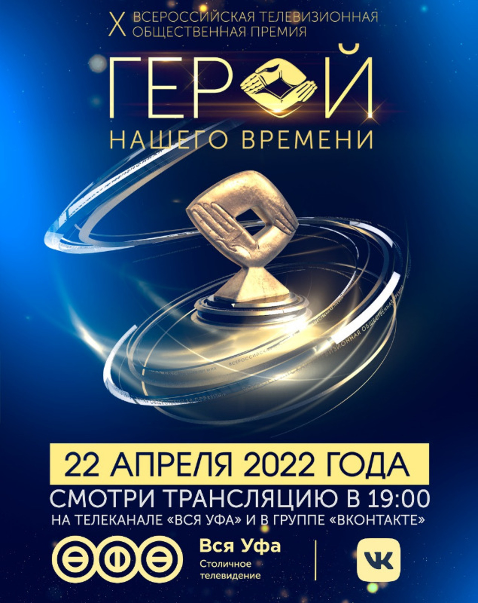 Прямую трансляцию премии «Герой нашего времени» можно посмотреть на телеканале «Вся Уфа», телеканале «БСТ» и в группе телеканала в VK. Начало церемонии 22 апреля в 19:00.