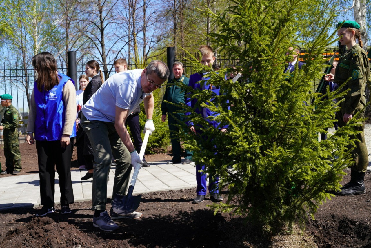 Радий Хабиров отметил, что 8 мая в парке «Патриот» высадили 400 саженцев липы, сформировав Аллею героев. Он также выразил надежду, что парк «Патриот» станет местом притяжения для ребят, которые любят Родину и готовы учиться ее защищать.