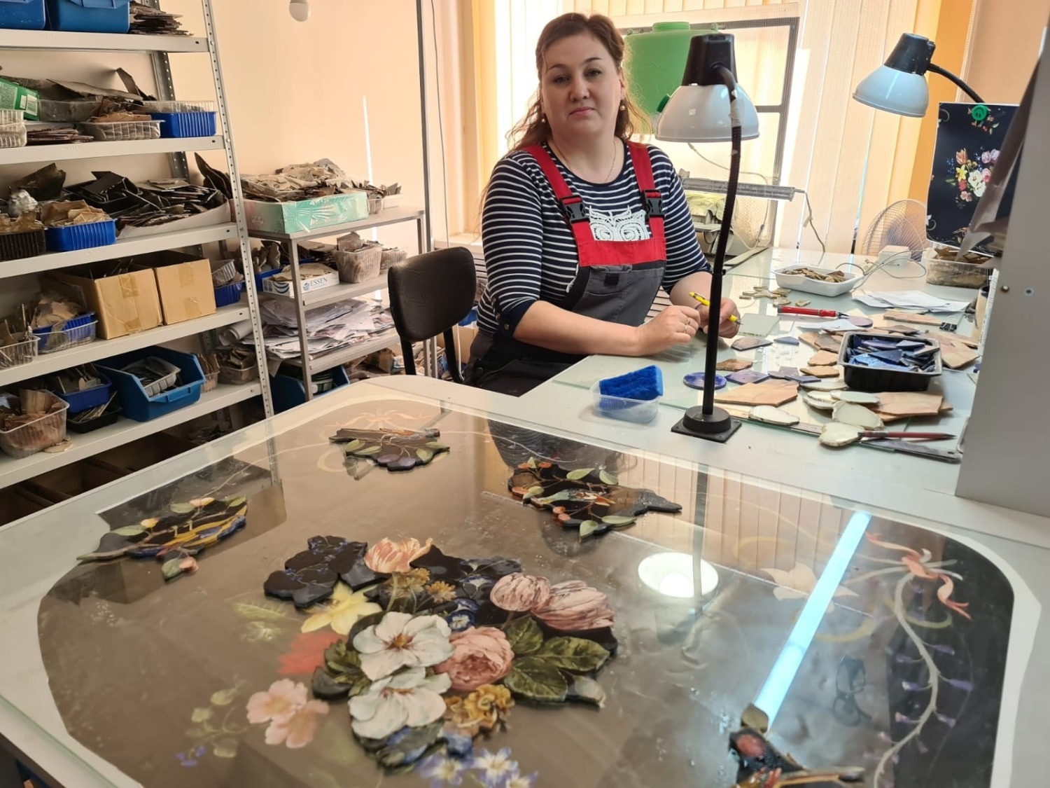 «Эта потрясающая картина — не акварель, не краски. Она набрана из камней, из башкирской яшмы. Называется «Древо жизни» — по мотивам башкирского эпоса «Урал-батыр», — прокомментировал Радий Хабиров.