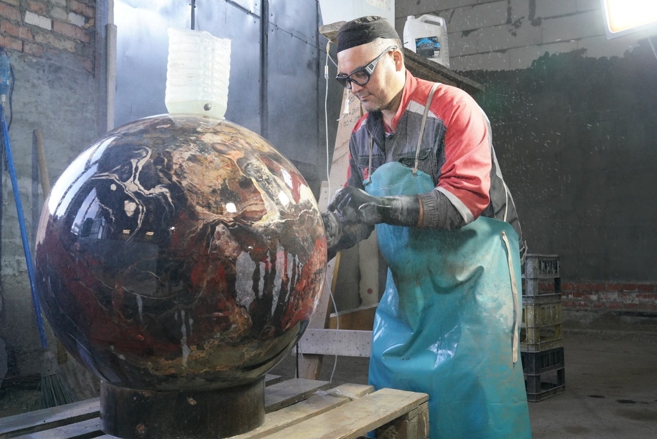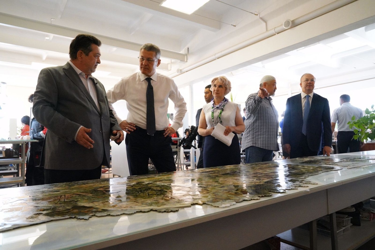 Руководитель республики рассказал, что над картиной работала целая группа мастеров-камнерезов предприятия.