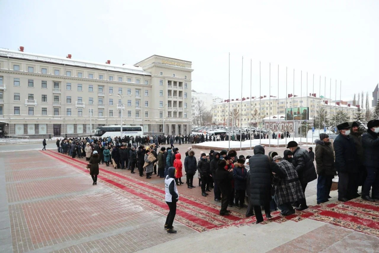 В Уфе организован траурный митинг в память о Муртазе Рахимове, который ушел из жизни 11 января. Продолжает прибывать поток желающих проститься с первым президентом республики. Толпа жителей Башкирии, которые хотят отдать дань памяти, выстроилась до перекрестка Ленина и Кирова.