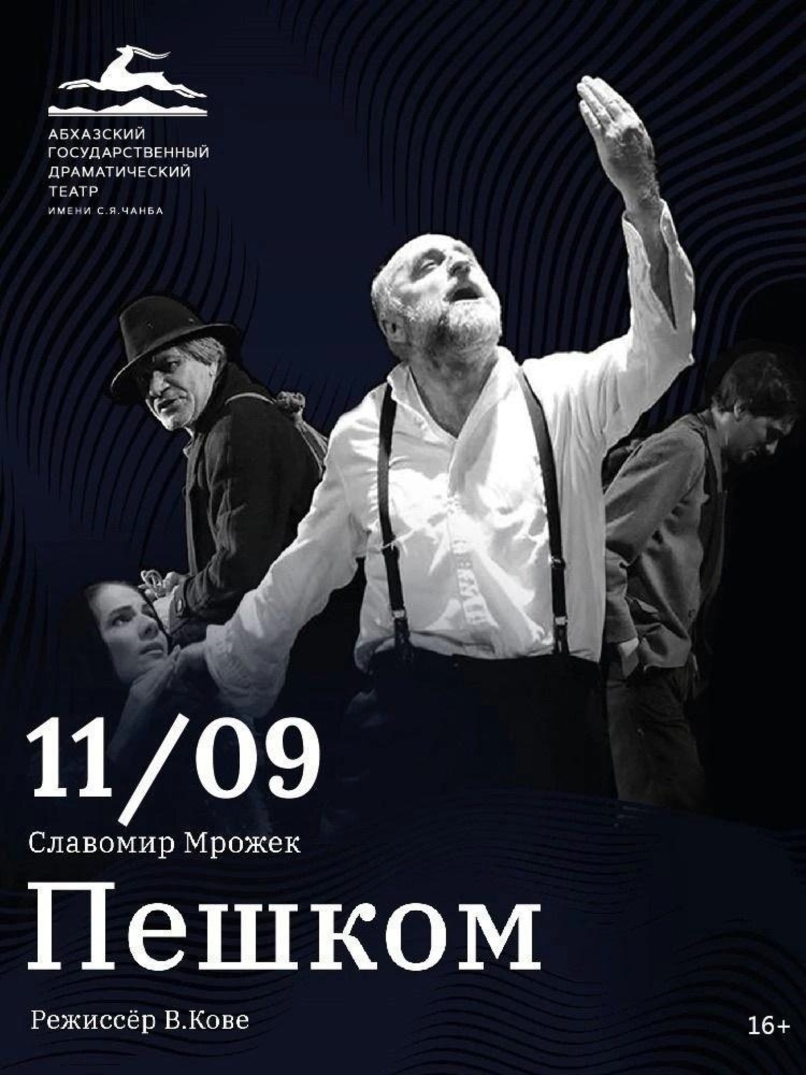 Так, 11 сентября, в 19.00 уфимцы и гости столицы смогут посмотреть спектакль «Пешком» по пьесе Славомира Мрожека. Режиссёр-постановщик — народный артист Абхазии Валерия Кове. Это история о наследии Второй мировой войны. Несмотря на трагичность темы, герои говорят о грустном с улыбкой. Спектакль полон юмора и возвышенной лирики.