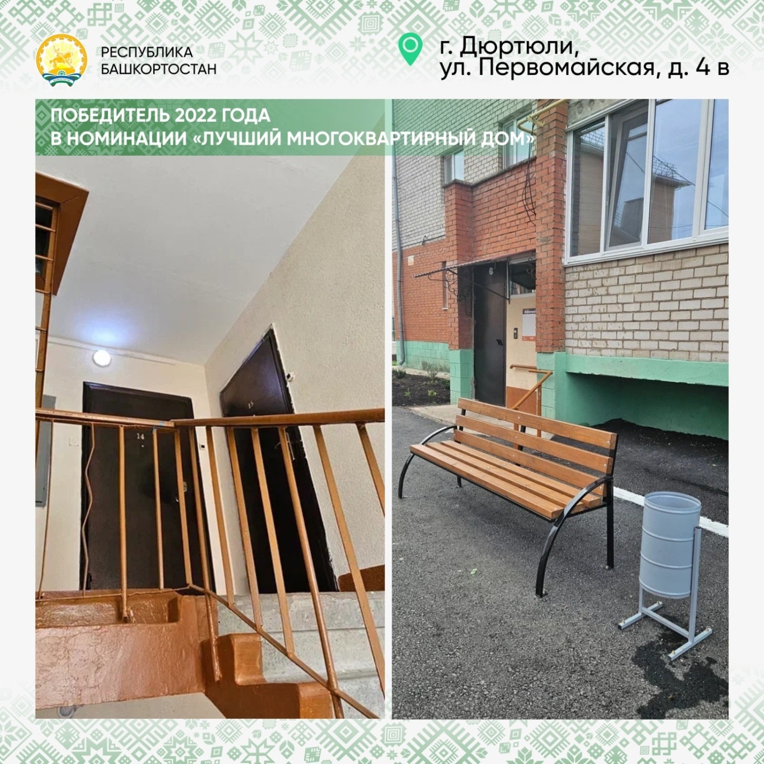 «Было 207 заявок из 44 муниципалитетов. Выигранными деньгами распорядились по-разному. Одни утеплили фасад, другие — установили окна и двери в подъезде, третьи — поменяли систему отопления», — сообщил Глава РБ. Решение о том, как потратить средства, принимается на общем собрании.