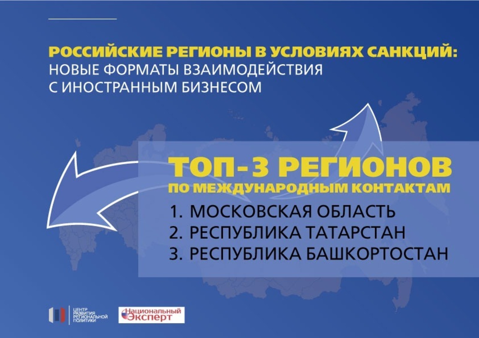 Башкирия стала третьей в рейтинге регионов по международной активности. Об этом сказано в докладе «Российские регионы в условиях санкций: новые форматы взаимодействия с иностранным бизнесом». Доклад опубликовал «Центр развития региональной политики».