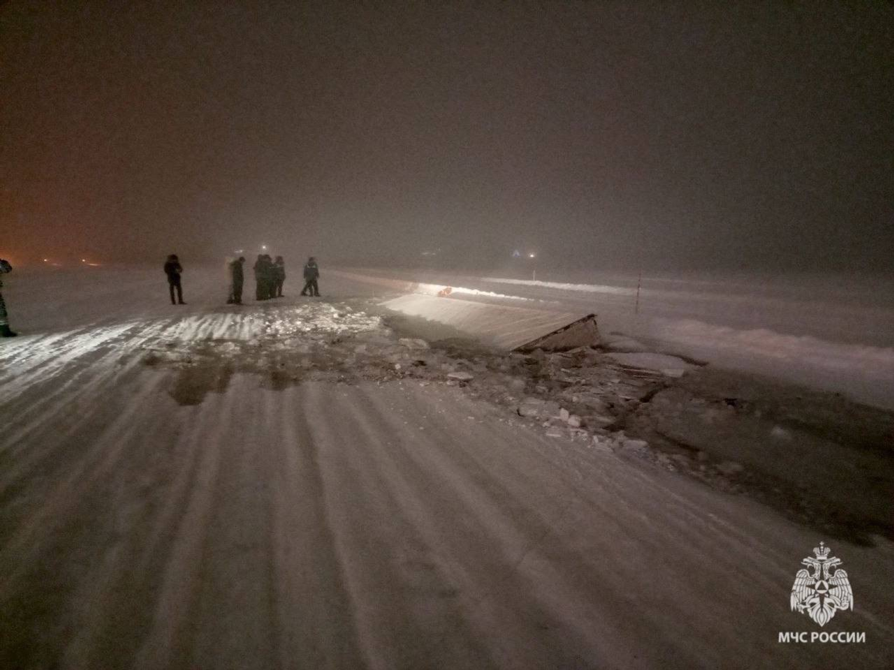 Длина ледовой переправы составляет 520 метров. Толщина льда — порядка 30 сантиметров, грузоподъемность — три тонны. Организовано две полосы движения, по 50 метров шириной каждая.
