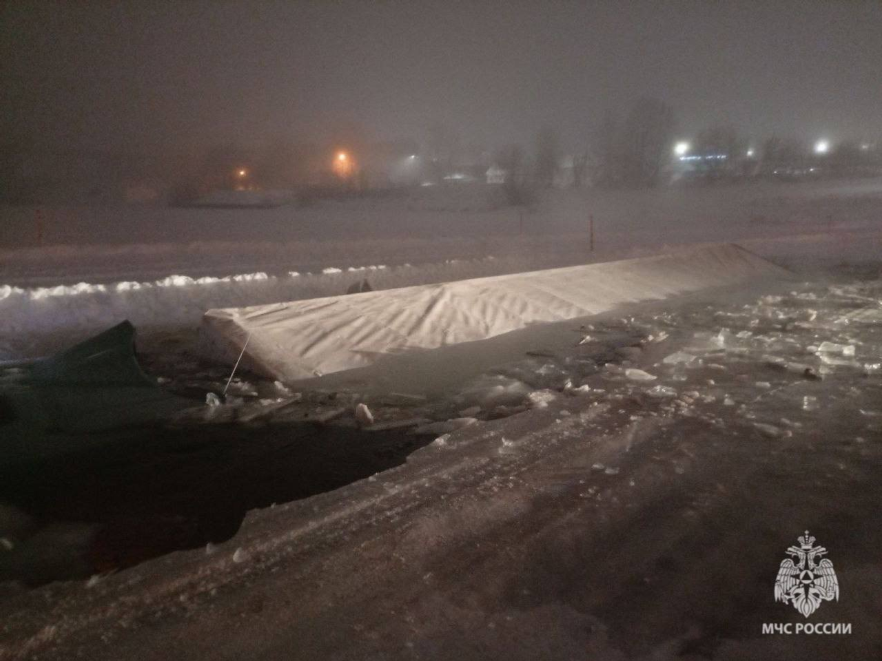 В Башкирии на ледовой переправе грузовик ушел под лед. Предположительно, внутри находился водитель.