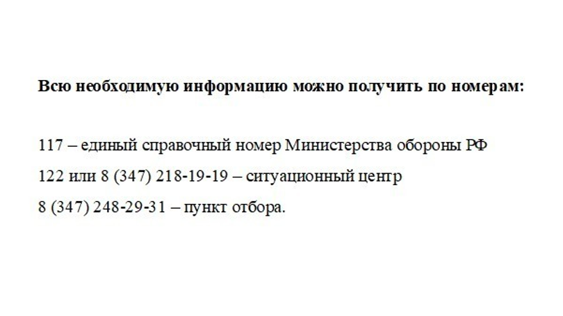 В Башкирии добровольцы могут подписать контракт и отправиться на СВО. Заявки принимаются в офисах МФЦ «Мои документы», военкоматах по месту жительства, в пункте отбора по контракту РБ в Уфе по адресу: Революционная, 156. Также можно направить заявку через Госуслуги, чат-бот в Телеграм и официальный сайт башбат.рф.