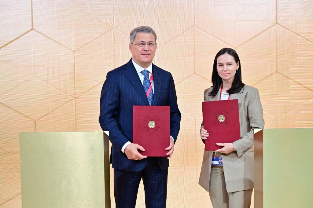 6 июня на площадке ПМЭФ-2024 Глава Башкирии Радий Хабиров и президент ООО «Корпоративный центр Икс 5» Екатерина Лобачёва подписали соглашение о сотрудничестве правительства республики с компанией.
