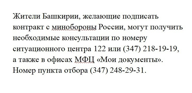 Как уже писала «Электрогазета», с 10 июля 2024 года в Башкирии по поручению Главы РБ Радия Хабирова увеличен размер единовременной выплаты контрактникам. Жители республики, подписавшие контракт с минобороны РФ для службы в зоне проведения специальной военной операции, получат единовременную выплату 505 тысяч рублей. Вместе с выплатами министерства обороны РФ и муниципалитетов при заключении контракта общая сумма составит до 1 миллиона рублей.