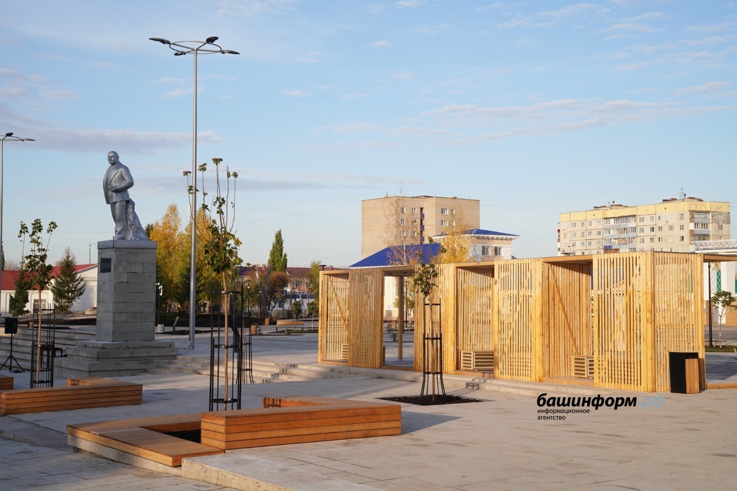 Помимо это были благоустроены и другие городские общественные пространства. В октябре 2020 года в Ишимбае состоялось открытие обновленной центральной площади имени Ленина. Проект «Городская площадь. Перезагрузка» победил во Всероссийском конкурсе лучших проектов создания комфортной городской среды в малых городах и исторических поселениях. Там сохранили стадион и Дворец культуры. Создали новые входные группы, чтобы на площадь можно было зайти с разных сторон. На главной площади установили амфитеатр с удобными сидениями, подсветкой и электрическим оснащением, выставочные павильоны, фонтан, символизирующий нефть, теплый павильон для размещения кафе или выставочного зала. В сквере появились зона рекреации, спортивные площадки, шашечный сад и детская площадка.