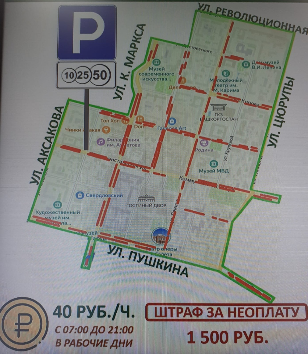 Один час платной парковки обойдется водителю в 40 рублей. Плата будет взиматься за стоянку с 7:00 до 21:00 в будние дни. В праздничные и выходные дни машину можно будет поставить бесплатно. 29 мая Госсобрание — Курултай РБ установил сумму штрафа за неоплату парковочного места. Штраф составит полторы тысячи рублей.