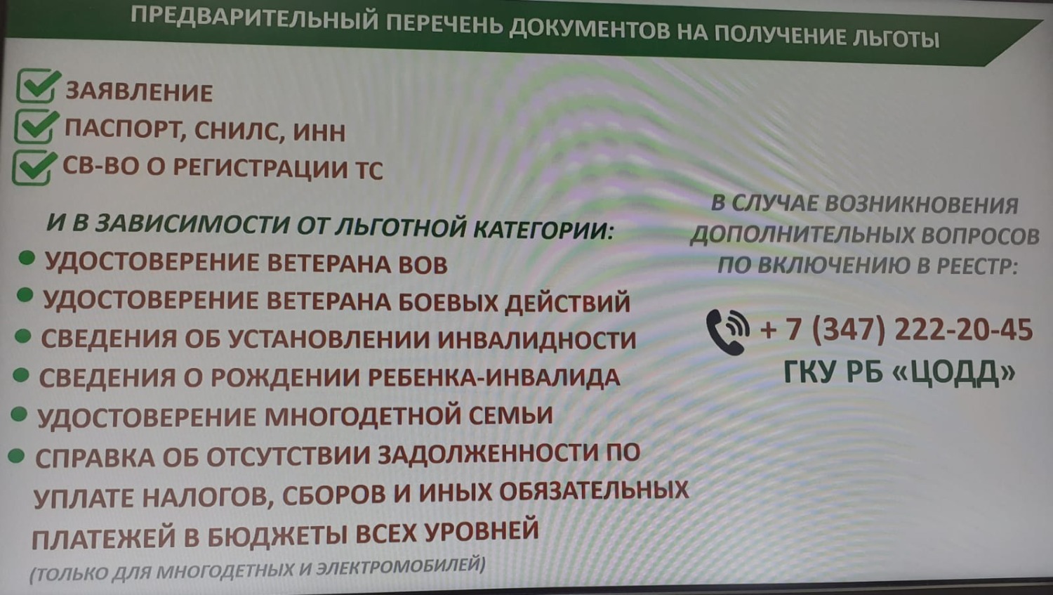 Со 2 июня жители республики могут начать оформлять льготу. Вариантов подачи заявлений два: через МФЦ и госуслуги. Со 2 июня пока только можно обратиться за льготой с пакетом документов в МФЦ. Приблизительно с осени это можно будет сделать через портал Госуслуг. При подаче заявления нужно обязательно предоставить паспорт, СНИЛС, ИНН, свидетельство о регистрации транспортного средства. Если заявление подает ветеран Великой Отечественной войны, то дополнительно прикладывается удостоверение ветерана войны. Участникам боевых действий необходимо приложить удостоверение ветерана боевых действий. При получении льготы инвалидам надо предоставить сведения об установлении инвалидности. Свидетельство ребенка-инвалида подается, если водитель на своей машине возит ребенка-инвалида.