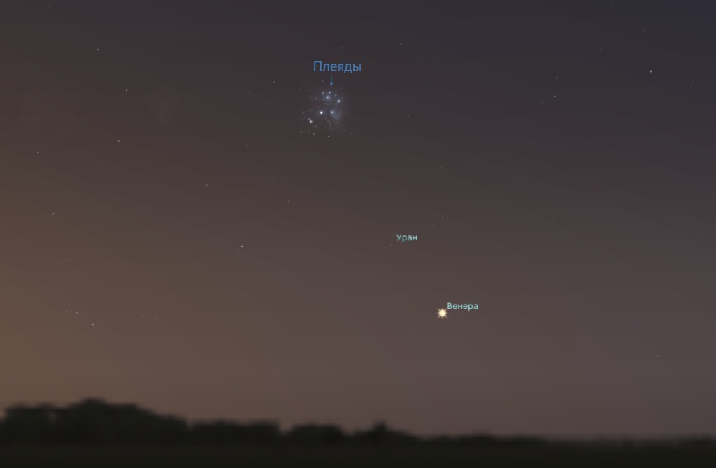 Утром 23 июля картина слегка изменится: Луна, сместившись за сутки на 13 градусов, окажется над Юпитером. Луна и Юпитер будут находиться в созвездии Близнецов, Венера в Тельце. Светила будут видны до восхода Солнца, постепенно растворяясь в его лучах.