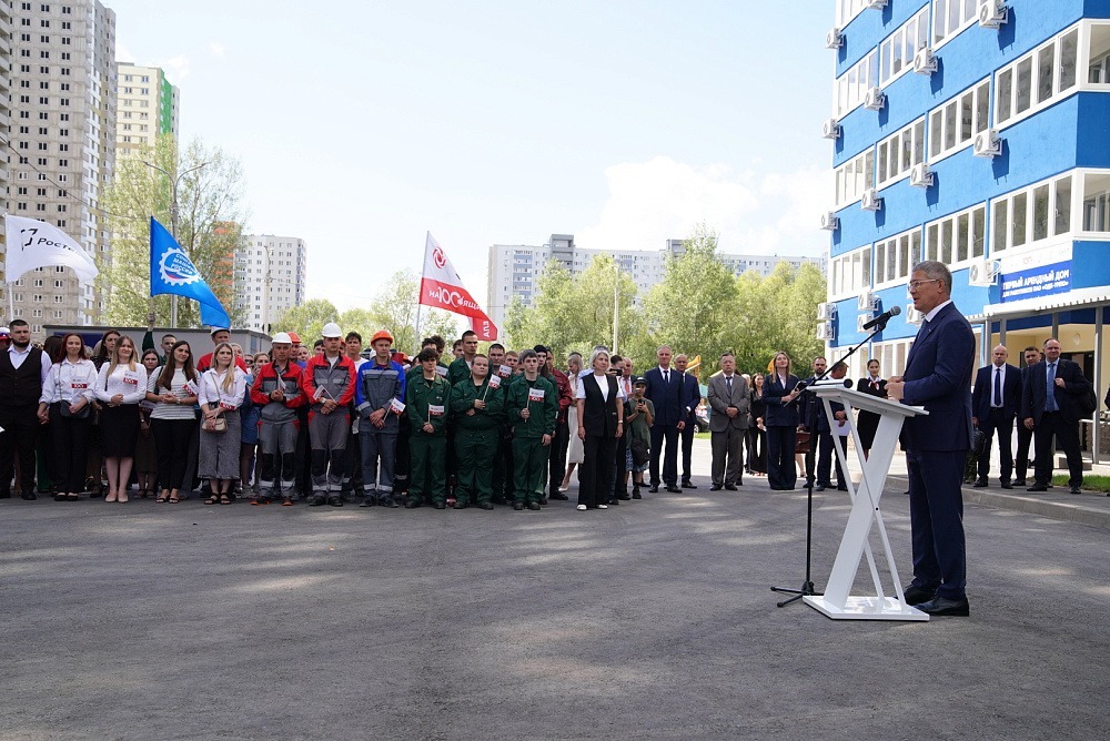 — Это первый арендный дом в Башкортостане, и в нём будут жить настоящие труженики. Благодарю Госкорпорацию "Ростех" за заботу о сотрудниках, — отметил Радий Хабиров. — Республика всегда готова поддерживать предприятие, в том числе в социальных проектах.