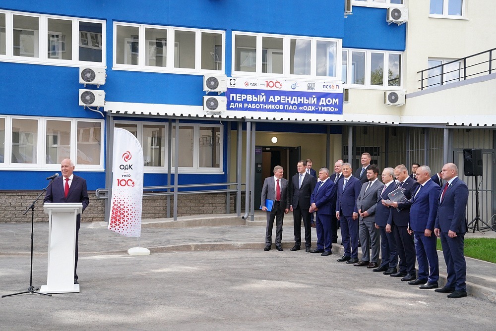 18 июля в Уфе состоялось торжественное открытие первого арендного дома ПАО «ОДК-УМПО», построенного для иногородних работников предприятия и их семей. В мероприятии приняли участие Глава Башкирии Радий Хабиров и генеральный директор Госкорпорации «Ростех» Сергей Чемезов.