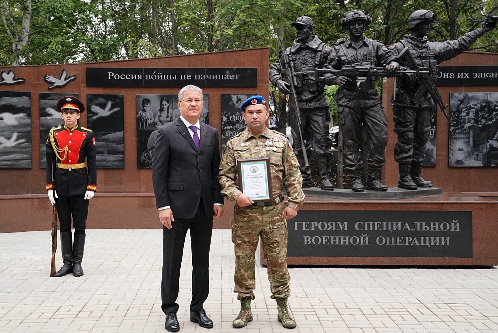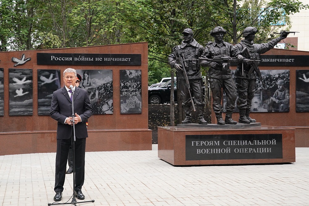 — Один из девизов этого памятника — «Своих не бросаем». Это объединяющие слова последних лет. Башкортостан действительно поддерживает своих: вся республика помогает нашим бойцам, чтобы они вернулись домой живыми и здоровыми, — сказал руководитель региона.