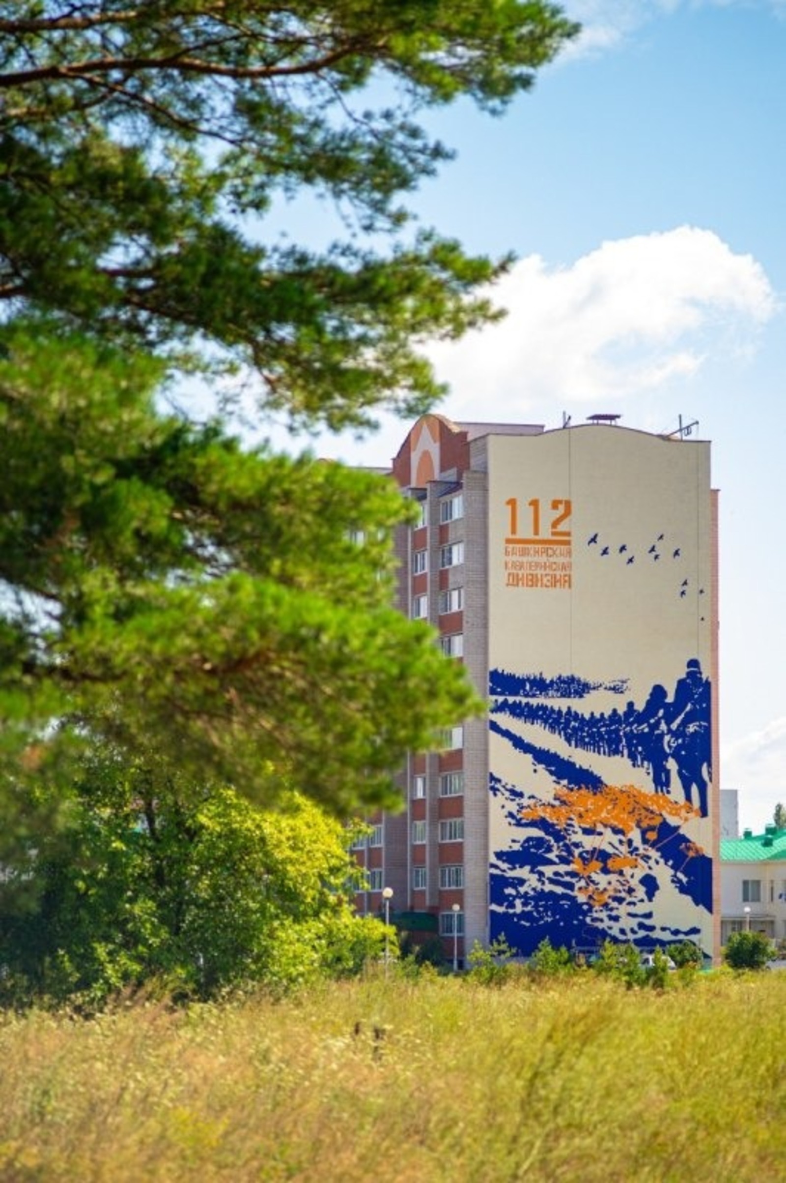 Работа художника из Башкирии Кирилла Ильина «Всадники» представляет собой монументальное произведение на фасаде десятиэтажного дома и изображает воинов легендарной 112-й Башкирской кавдивизии. Центральный образ мурала — кавалеристы под командованием генерал-майора Минигали Шаймуратова.