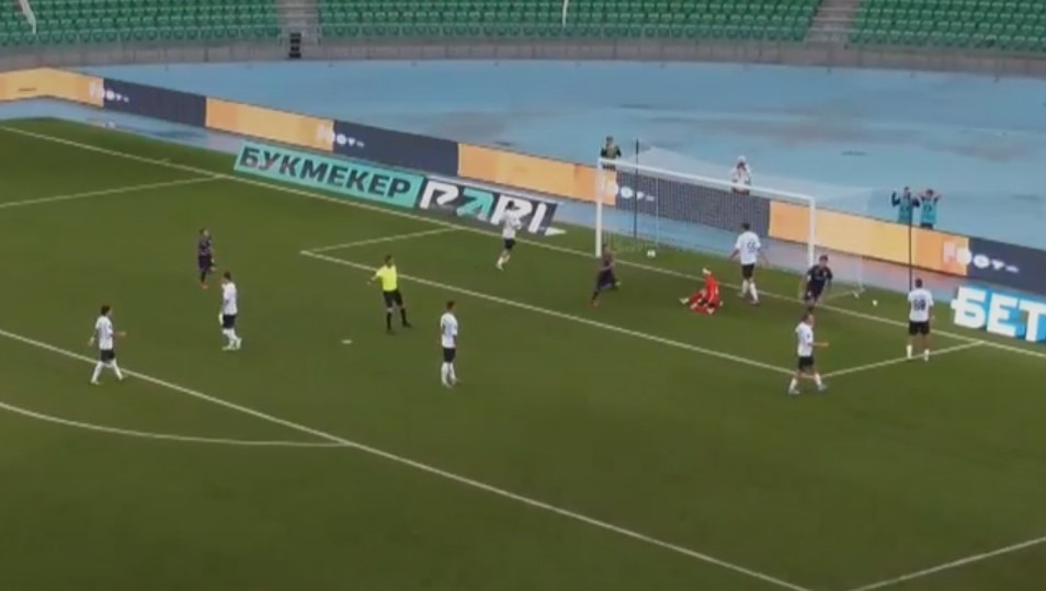 Первый мяч в ворота «Чайки» залетел на 26-й минуте. И главное, ничего не предвещало развития таких событий. Уфимские футболисты перехватили мяч на своей половине поля, быстро организовали контратаку, на острие которой проявил себя новичок горожан Уильямс Чимези. Он получил «снаряд» от партнера по команде и без особых усилий переиграл голкипера «Чайки», выйдя с ним один на один.