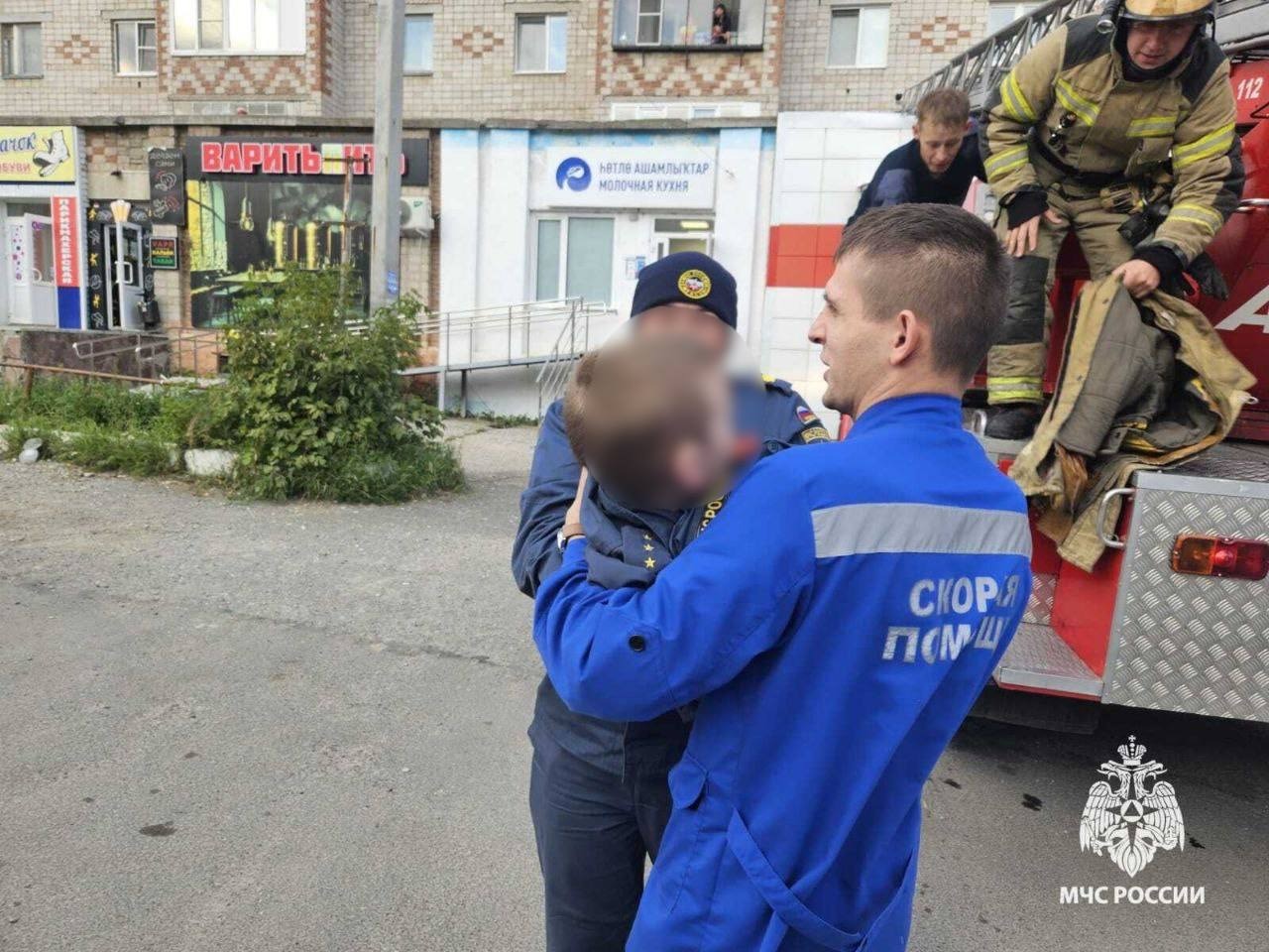 В Башкирии с крыши магазина сняли маленького ребенка. На вид ему два-три года.
