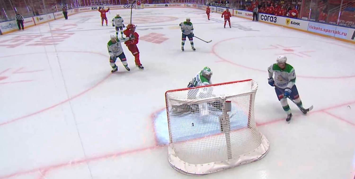 В третьем периоде снова отличились «спартаковцы». На 45-й минуте они отлично сыграли на вбрасывании. Шайба оказалась у Егора Филина, который выкатился из-за ворот «юлаевцев», сместился к краю площадки и сделал точную передачу на «пятак» Лукасу Локхарту и тот легко отправил «снаряд» под перекладину ворот гостей. Разрыв в счете достиг двух шайб – 2:0 в пользу столичных хоккеистов.