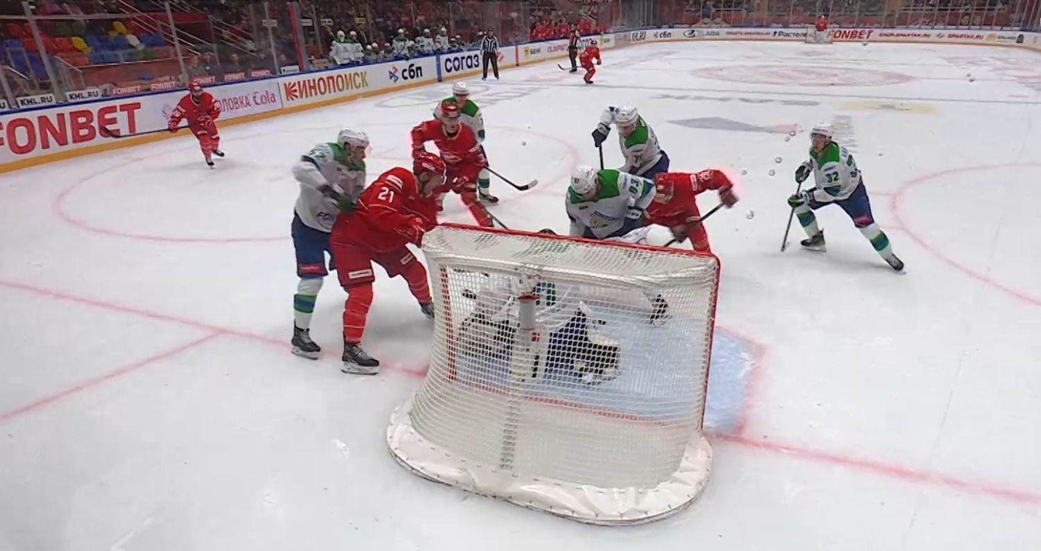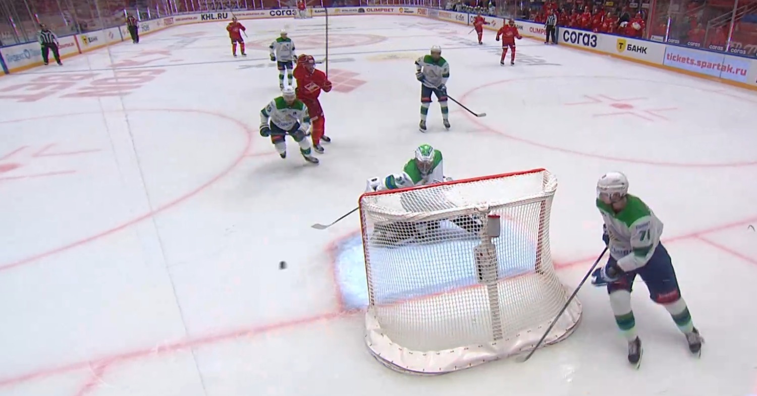 За шесть минут до конца второго периода после броска московского хоккеиста загорелась подсветка ворот. Шайба попала в перекладину, после чего отскочила в спину голкиперу, который затем быстро развернулся и выбил ее клюшкой в сторону, подальше от ворот.