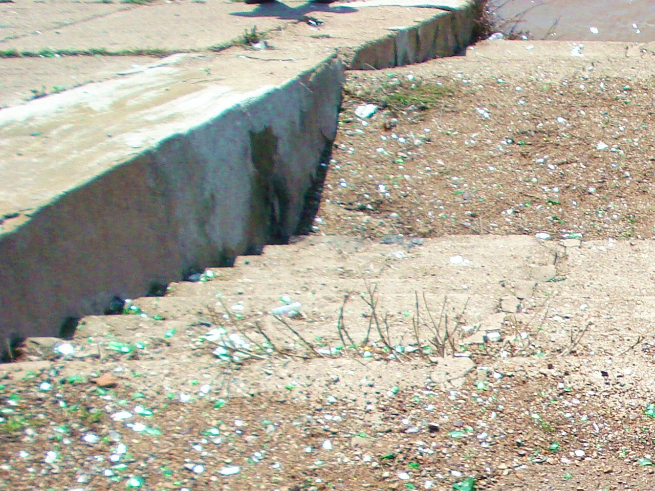 Высоко в небе светит солнце, которое отражается неимоверным блеском вдоль всего берега. Красиво! Одно огорчает - отражается солнце от тысяч разбросанных здесь осколков. Тысячи и тысячи осколков стекла: одни не больше камешка, другие величиной с кулак. Всё вокруг «кричит» о бурном времяпровождении.