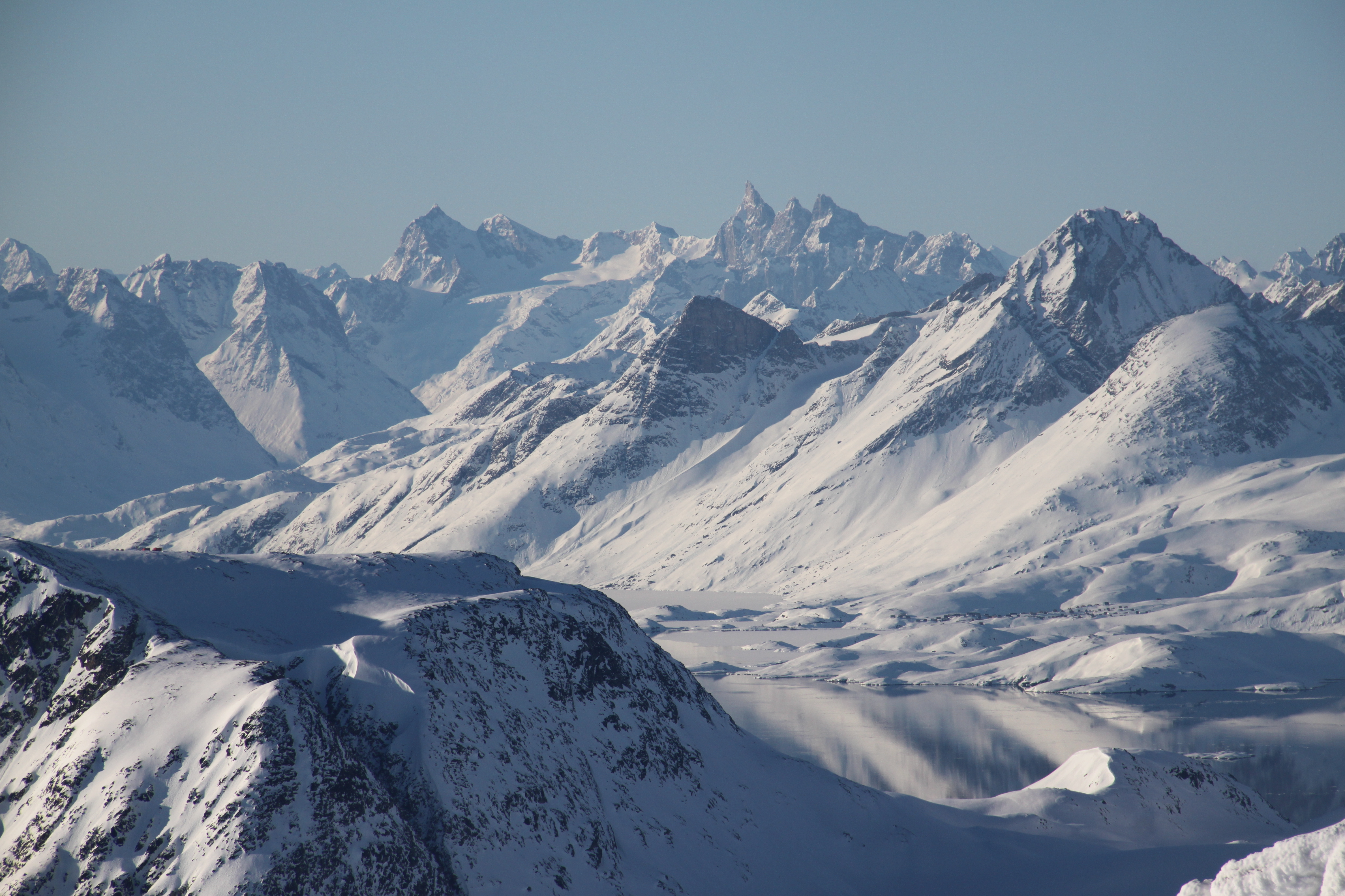 Восточное побережье практически не обжито, там высятся остроконечные скалистые горы, покрытые снегом.