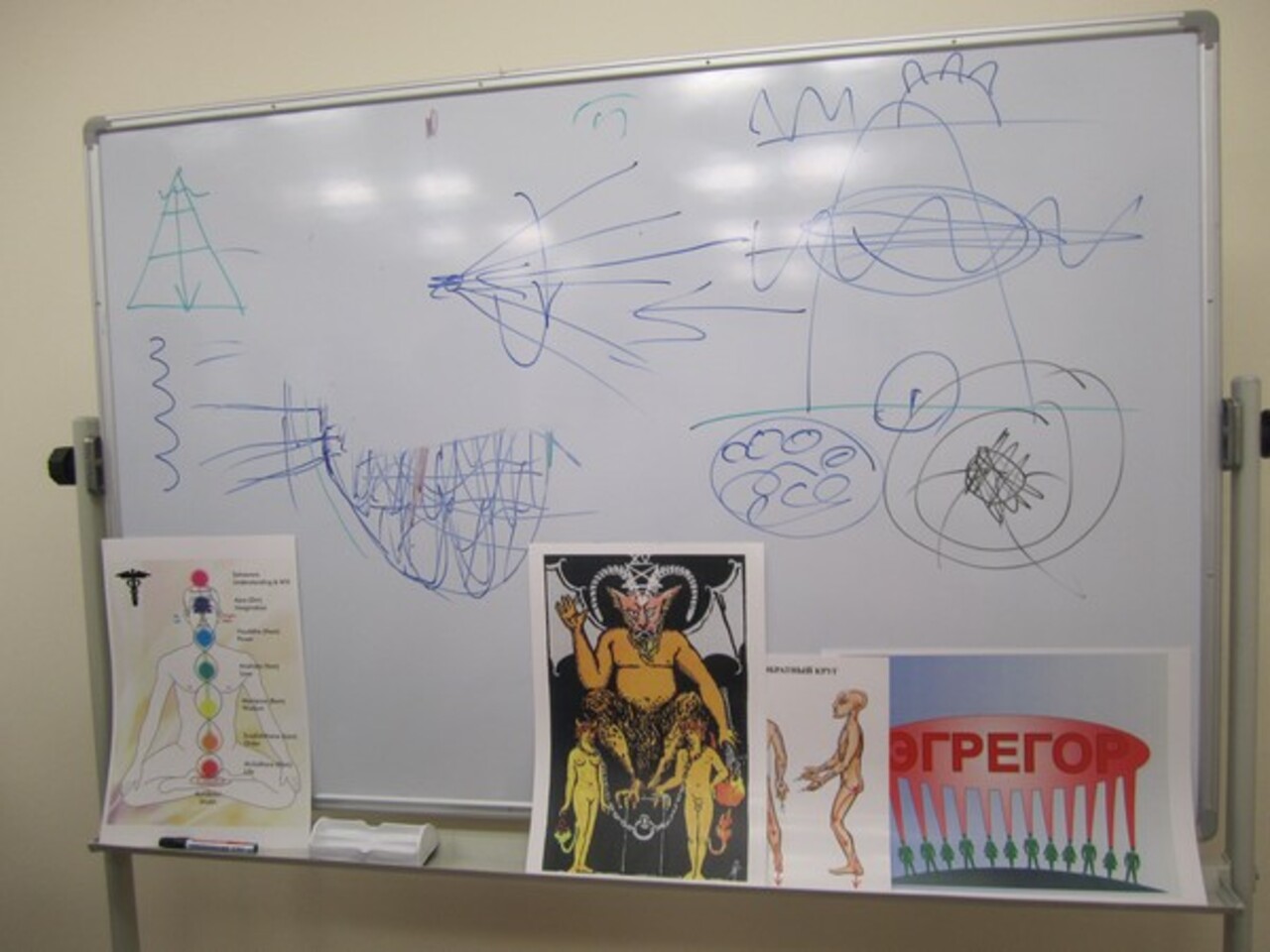 В течение всего этого времени перед нами стояла какая-то магическая карта, которая, якобы, должна была нам помочь зарядиться денежной энергией. На ней было изображено какое-то магическое козлоногое существо с рогами, напоминающее сатира. Оно держало на цепи обнаженных мужчину и женщину с рогами и хвостами. Экстрасенс назвал это существо ангелом, хотя он больше походил на беса. Каким образом эта карта могла научить нас копить деньги, для меня так и осталось загадкой.
