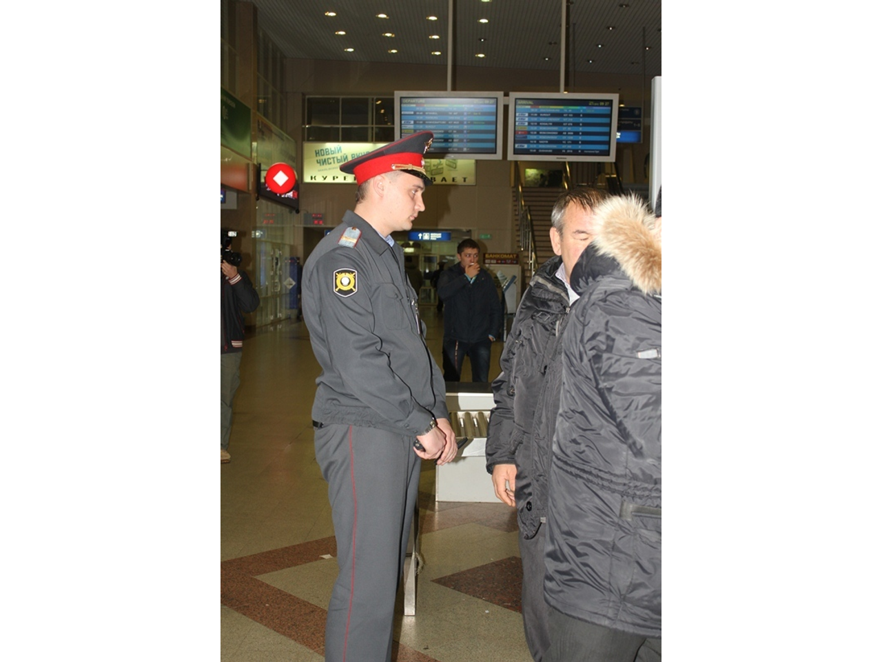 Мы, как обычные пассажиры, видим первый пункт досмотра и первого сотрудника полиции уже на самом входе, рядом с рамкой металлоискателя. Следующий пункт, где вы увидите сотрудников полиции – отделение в самом здании аэропорта. Тут два раза в сутки проходит инструктаж сотрудников. На нем проверяется их внешний вид, наличие служебных удостоверений, записных книжек. Делается обзор прошедшей смены, ставятся задачи на предстоящую смену. В смену на дежурство вступает шесть-семь человек, это помимо оперативных сотрудников. Один встречает груз и багаж, чтобы не допустить краж. Сотрудник сопровождает грузчиков с аэропорта, чтобы предотвратить нарушения целостности и доступ к вещам. Просто патрулируют зону аэровокзала два-три человека. Есть и негласные сотрудники. Это те, которые не в форме. А существуют они для обеспечения антитеррористической безопасности. Так что любой человек в аэропорту может оказаться замаскированным сотрудником транспортной полиции!
