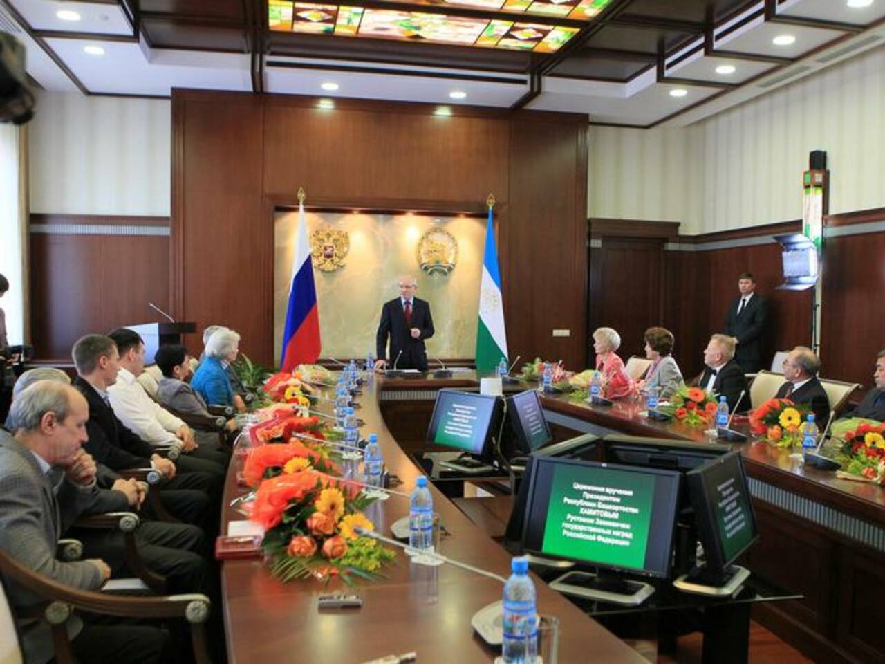 прибыл для награждения в Дом Республики. Среди награждаемых были известные люди – артистке Башкирского театра драмы имени Мажита Гафури Гюлли Мубаряковой был вручен орден Почета; профессору кафедры Уфимской государственной академии искусств имени Загира Исмагилова Миляуше Муртазиной и директору института биохимии и генетики УНЦ РАН Венеру Вахитову – медаль ордена «За заслуги перед Отечеством» II степени. Вместе с Александром Минеевым медаль «За спасение погибавших» получили еще три человека – учительница урманской средней школы Надежда Метельская и два водителя автобусов – Андрей Кучеров и Равиль Миникеев.
