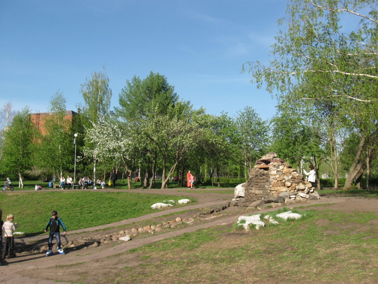 А ведь совсем недавно озерцо представляло собой грязную лужу, и единственным украшением возле него была раскидистая ива. Ее пришлось спилить, но, похоже, дерево дало побеги. Сама территория парка не отличалась ухоженностью и чистотой. Зато теперь в погожие дни здесь с удовольствием гуляют мамы и бабушки с детьми, культурно отдыхает молодёжь. Иногда так многолюдно, как на центральной городской площади в праздник. «Могут же, когда хотят!» - так и хочется воскликнуть, обращаясь к работникам Калининской администрации, которые всерьёз озаботились благоустройством парка.