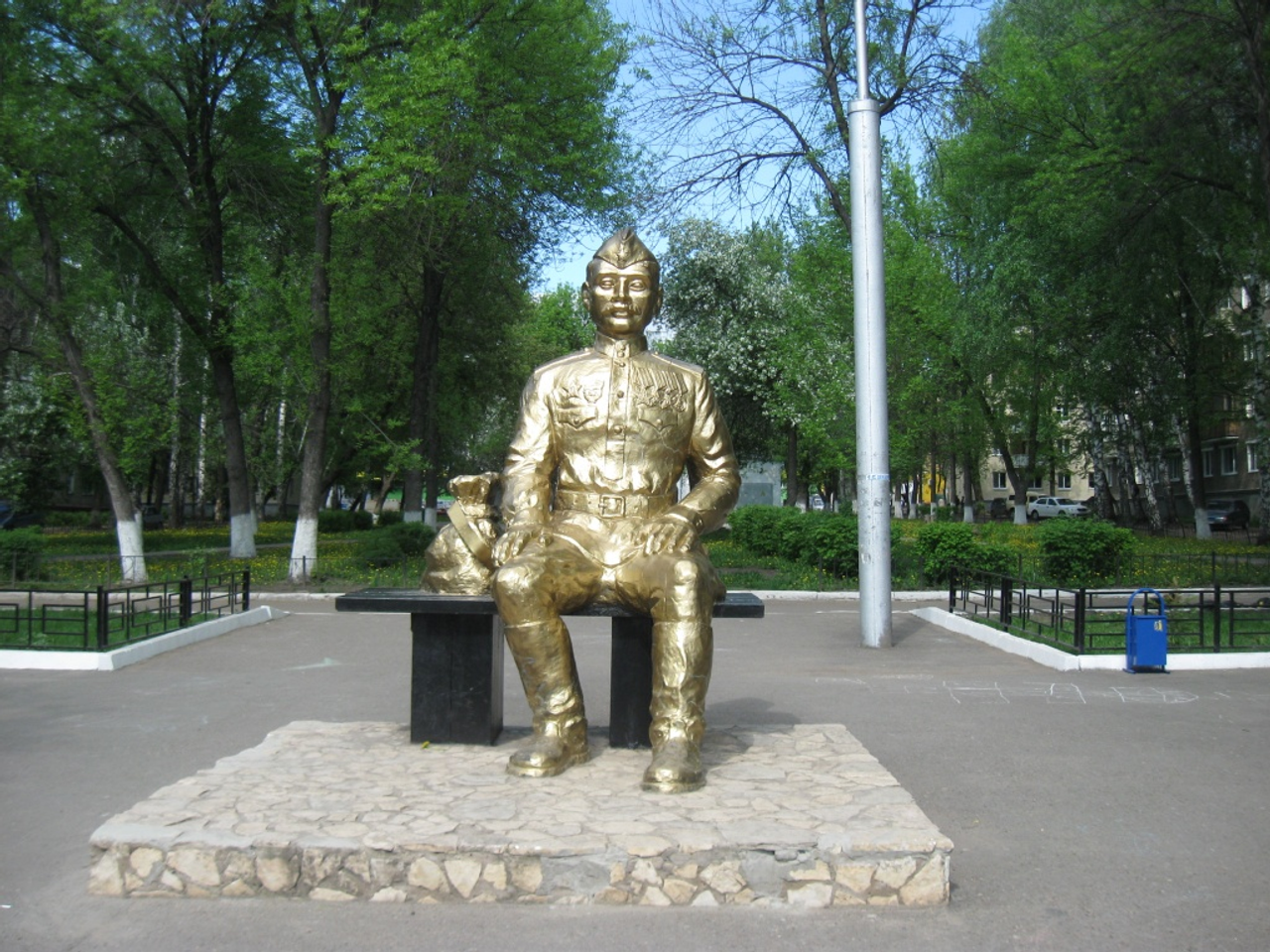 И повсюду, где дома стоят чуть в стороне от дороги, обустроены маленькие скверики и садочки, которые наиболее привлекательны весной. В одной такой «нише», напротив Калининского универмага, пережившего не одну реконструкцию, сейчас появился памятник солдату Великой Отечественной войны: усталый немолодой воин присел на скамейке, а рядом с ним вещмешок с нехитрой поклажей. Возле памятника любят фотографироваться дети.