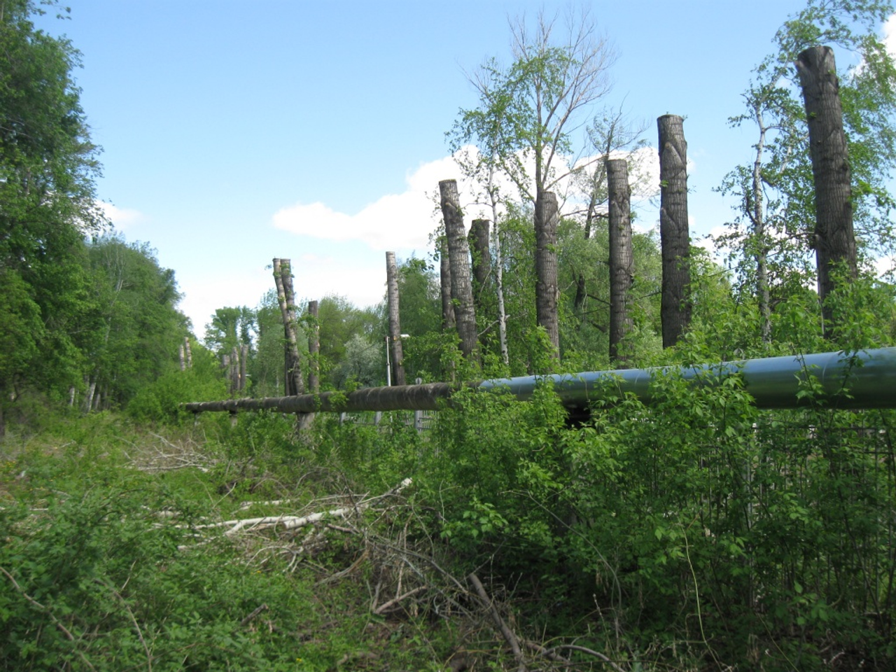 Не лучшим образом выглядит и территория парка, особенно вдоль железной дороги. Правда, в мае здесь были предприняты попытки привести зеленые насаждения в порядок: произведена санитарная рубка, укорочены кроны старых деревьев.