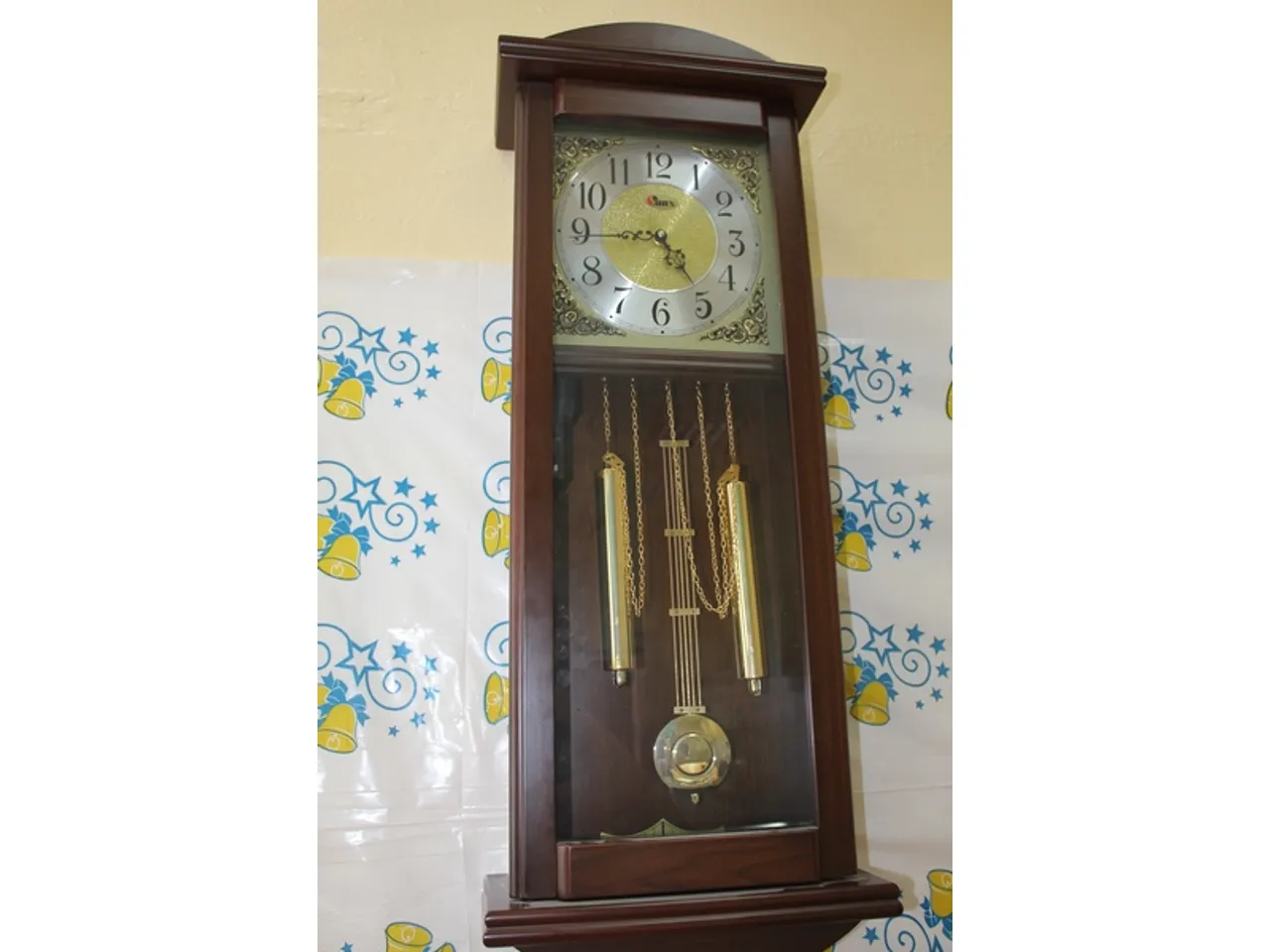 А маятник и гирьки — это всё пластмассовая бутафория. Не покупайте такие часы, не попадайтесь на удочку.