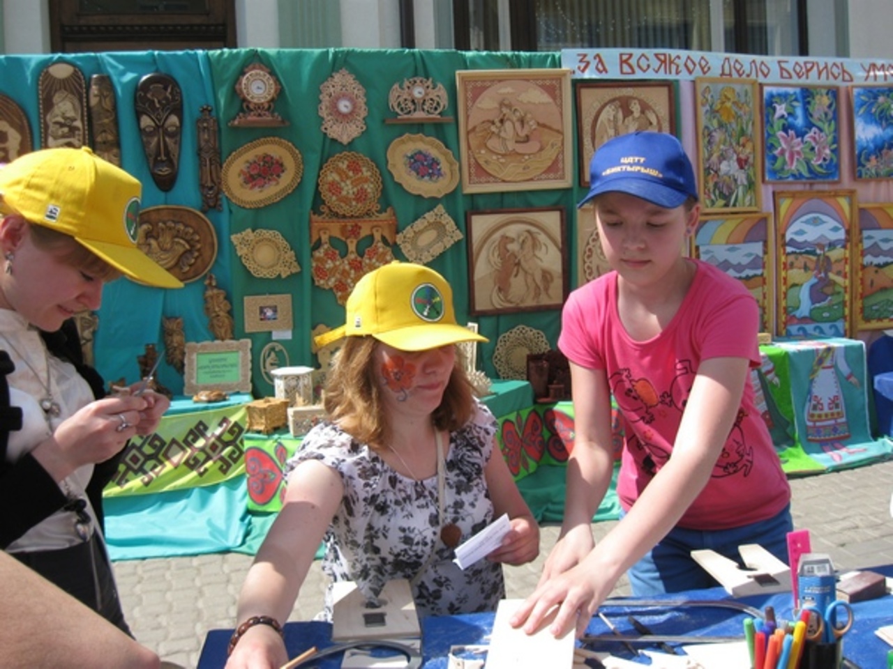 Тут же проводились мастер-классы по изготовлению поделок, шел активный обмен опытом. Впервые в городе на открытых площадках можно было своими руками под руководством опытных мастеров научиться делать народных кукол и ткать коврики, вылепить из глины вазу, сплести корзинку из лозы и освоить другие виды рукоделия.