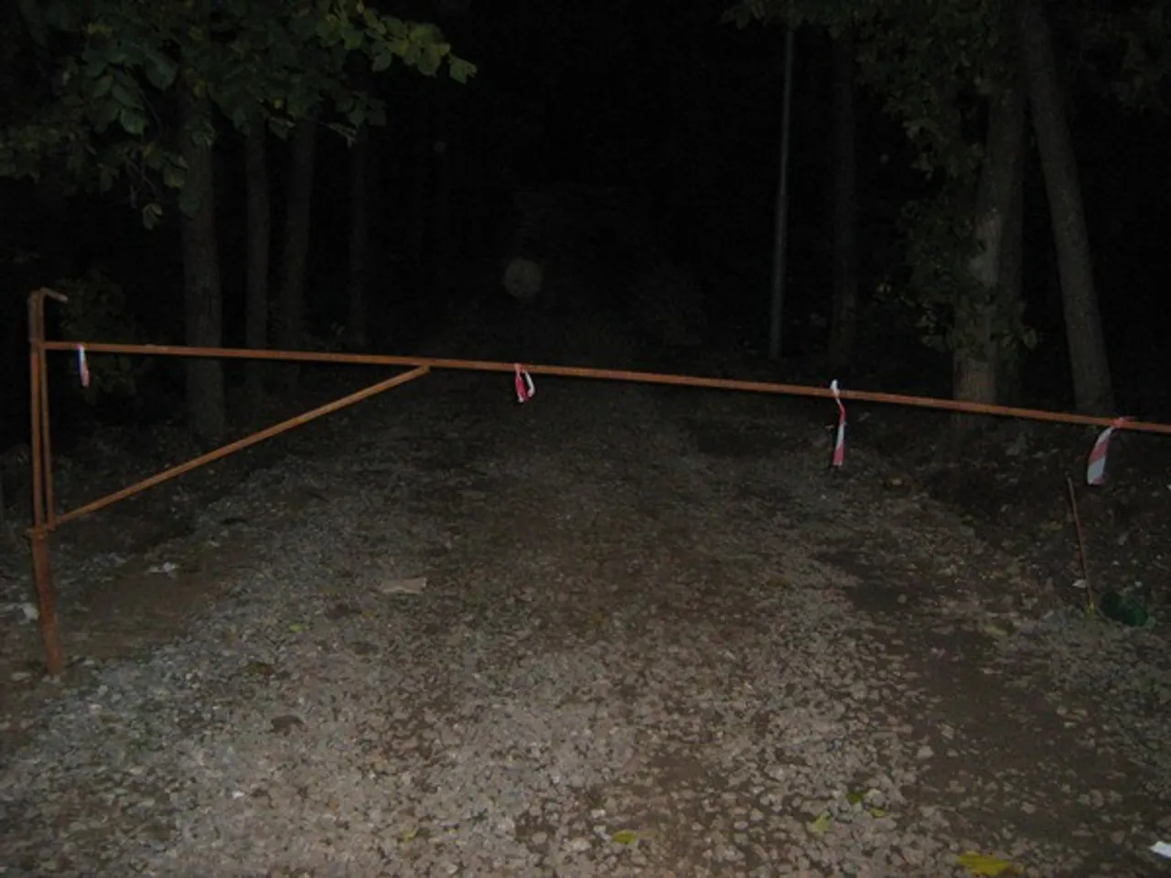 На въезде поставлен временный шлагбаум, чтобы лишние машины не мешали проведению работ, не углубляли колею.
