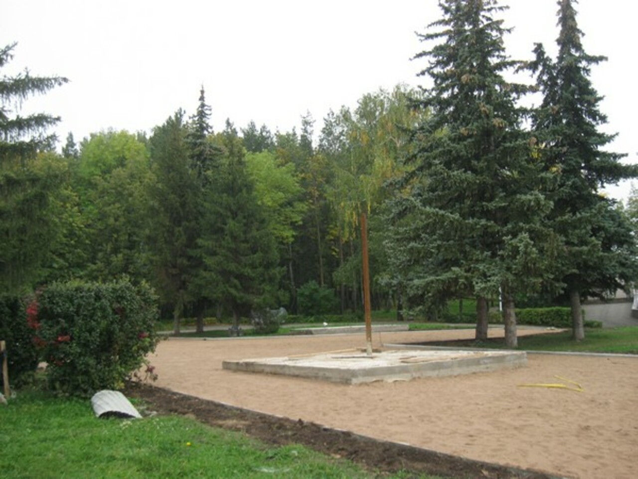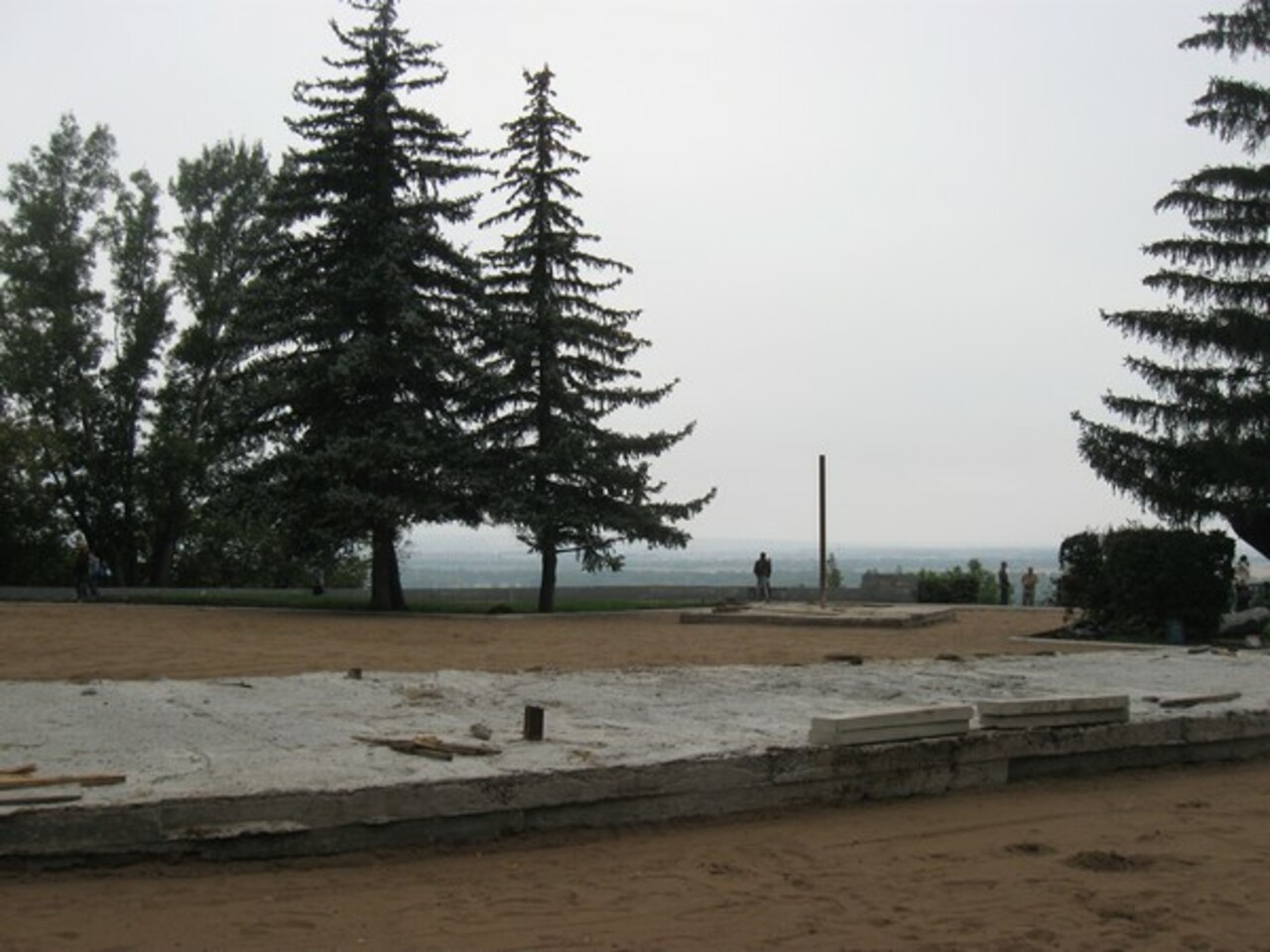 Сейчас там ведутся строительные работы: забетонированы площадки, благоустраивается территория. До этого она была довольно заброшенной (рядом разворачивались автомобили, валялся мусор). С возведением нового мемориала преобразится и эта часть парка.