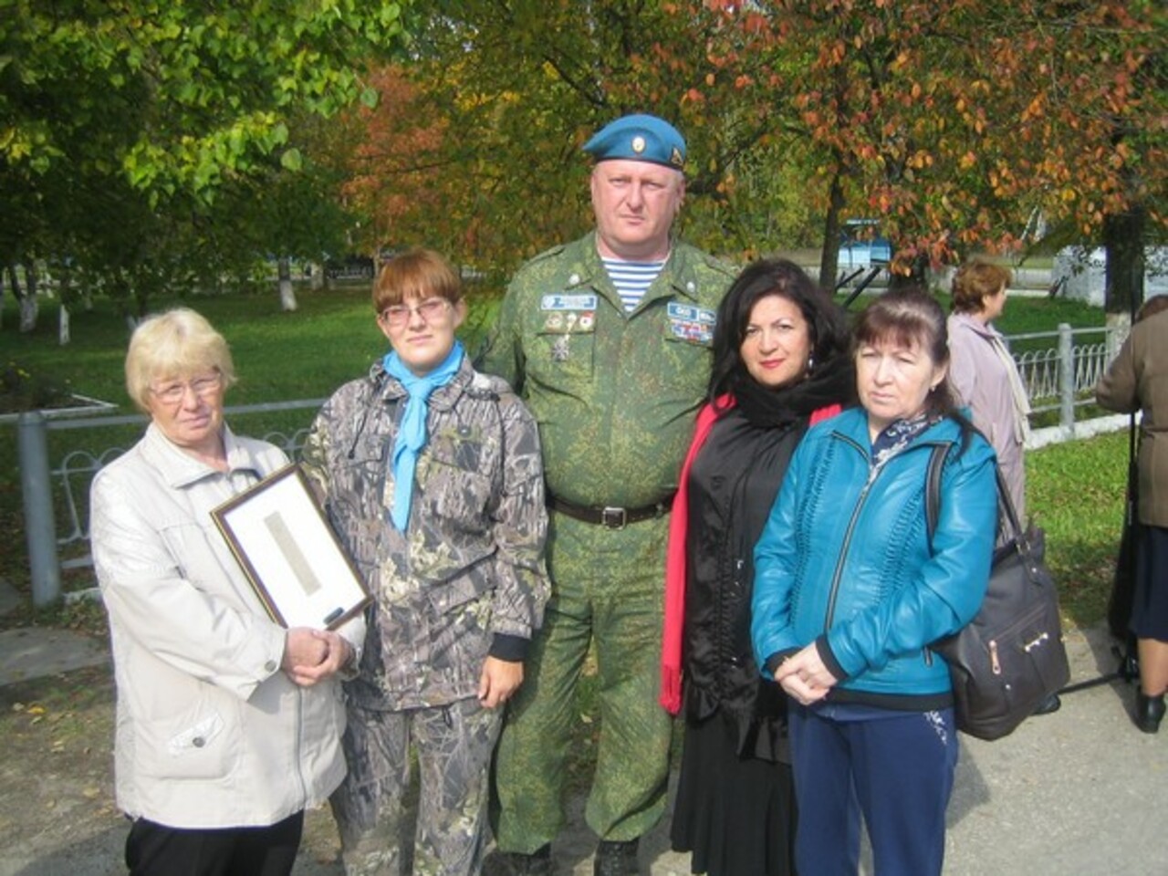 Звучит военная музыка. Стягиваются сельчане, начальство, школьники с учителями, кадеты из города Людиново. Телевидение, газеты берут интервью у двух ветеранов войны, у командира Сергея Новикова. Стоят, задумались, бабушки с букетами георгинов. Одна подходит ко мне: «А я из Янаула», веду её к Соне и Зиле, а они и так уже в кольце... землячек из Альшеевского, Туймазинского, Бураевского районов, в разные годы судьба привела их в Букань. «А вы знаете, батюшка-то наш, Алексей, тоже уфимец, а отец его родом отсюда, из Людиново». Это сколько земляков провожают солдата из Башкирии...