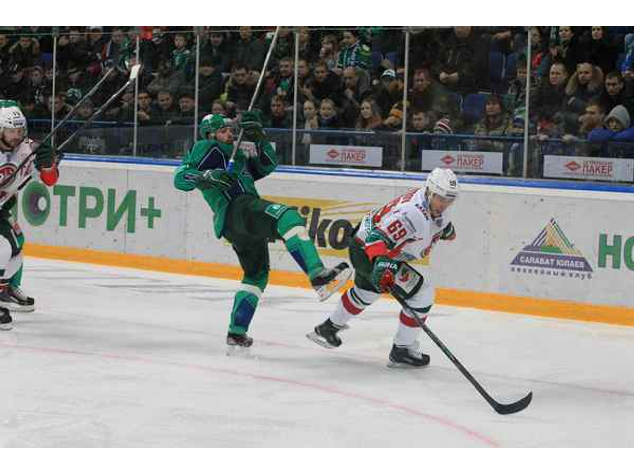 Казалось, это пробудит «Белых барсов» и они сметут оборону непредсказуемого «Салавата». Но вместо этого гости получают две шайбы в свои ворота — сначала Толпеко выстреливает из-под Никулина — 2:1. А затем и Слепышев вносит шайбу грудью в контратаке — 3:1.