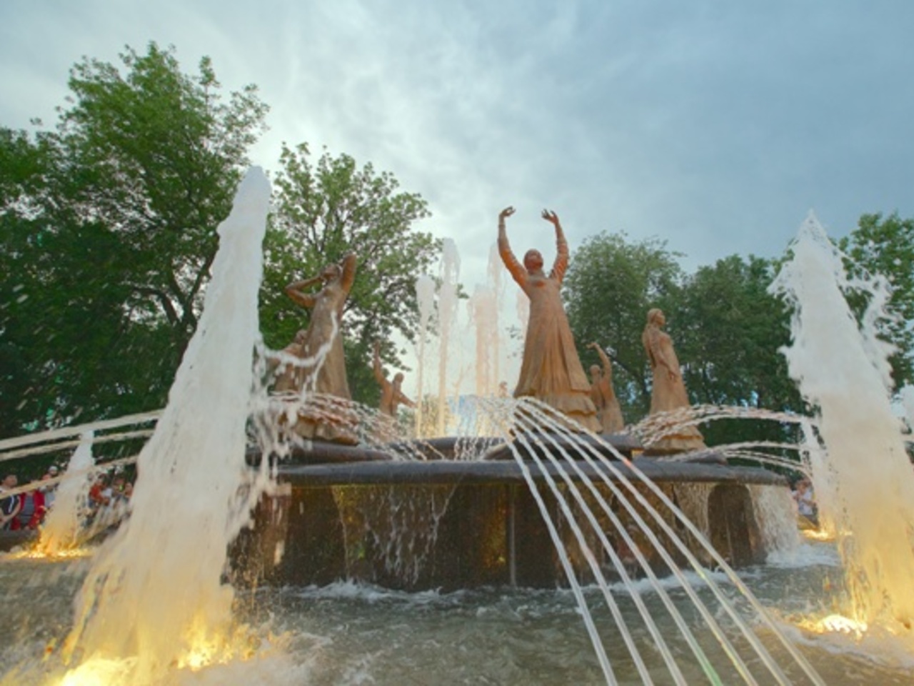 Стало доброй традицией фотографироваться возле этого памятника и проводить вечера в прилегающих кафе с азиатской, европейской и башкирской кухней. Сама площадь вызвала у меня двоякие чувства. Во-первых, именем этих фонтанов я бы не назвала ничего. Два резервуара, выкрашенные синей краской «back in USSR», с жалкими струйками воды. Во-вторых, материал, из которого были наскоро сколочены постройки. Я боялась отведать тамошнюю кухню, пока множество друзей на собственном желудке не подтвердило, что есть можно, очень вкусно и бюджетно. Но первое впечатление забылось, место стало любимым многими уфимцами за отличную еду, душевную компанию, да еще и под живую музыку по вечерам.