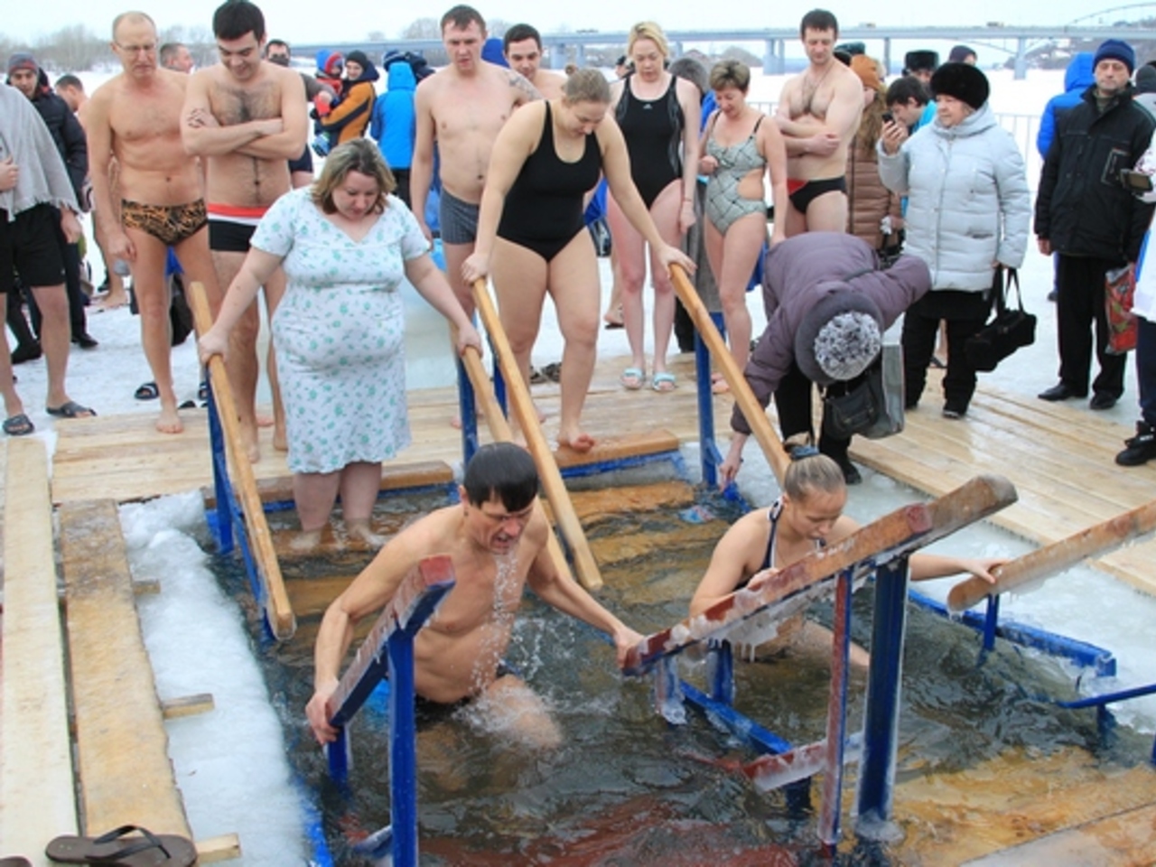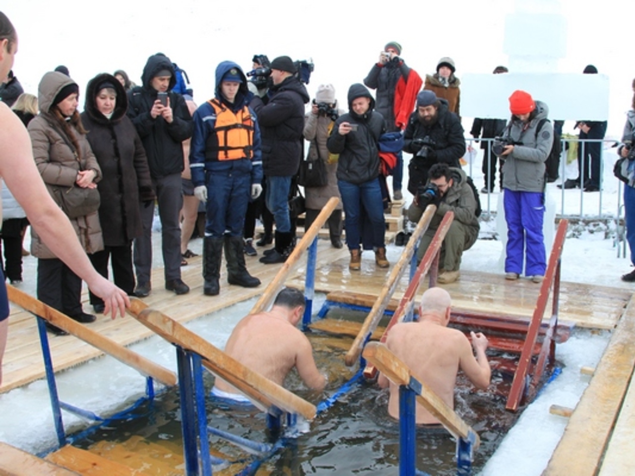 Корреспонденты «Электрогазеты» посетили купель на реке Белой в районе Монумента дружбы. Желающих окунуться в воду было предостаточно. В основном, в прорубь погружались мужчины. Женщин и детей было значительно меньше. Также основная масса людей совершала этот ритуал не в первый раз.